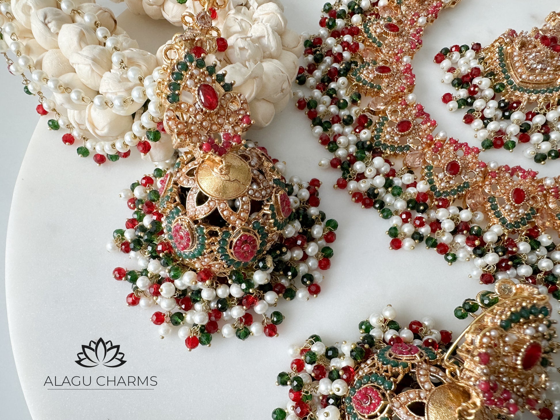 Pakistani style necklace with jhumka, ear chain and matching tikka