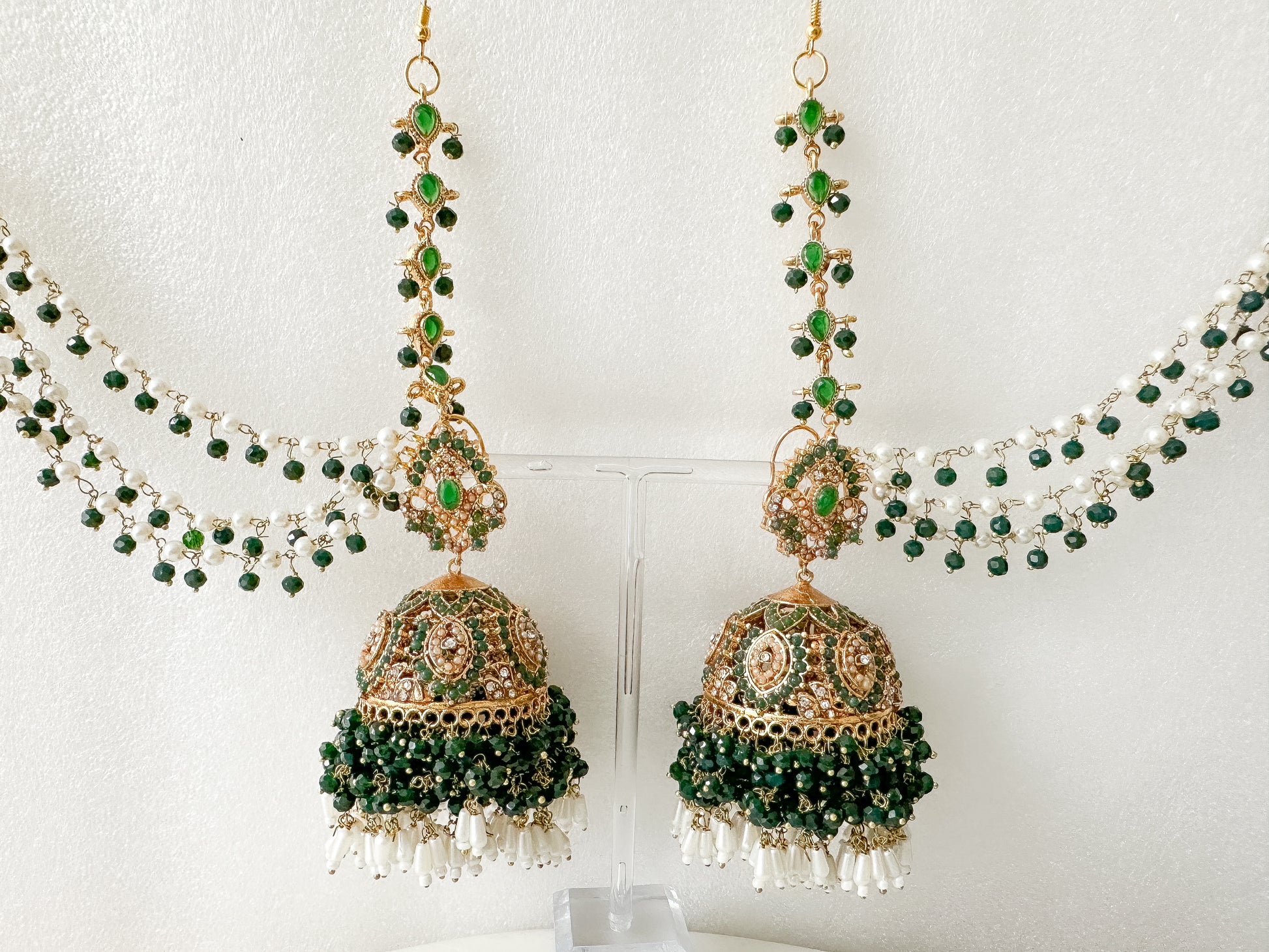 AMAYA - Pakistani Jhumka with ear chain (green)