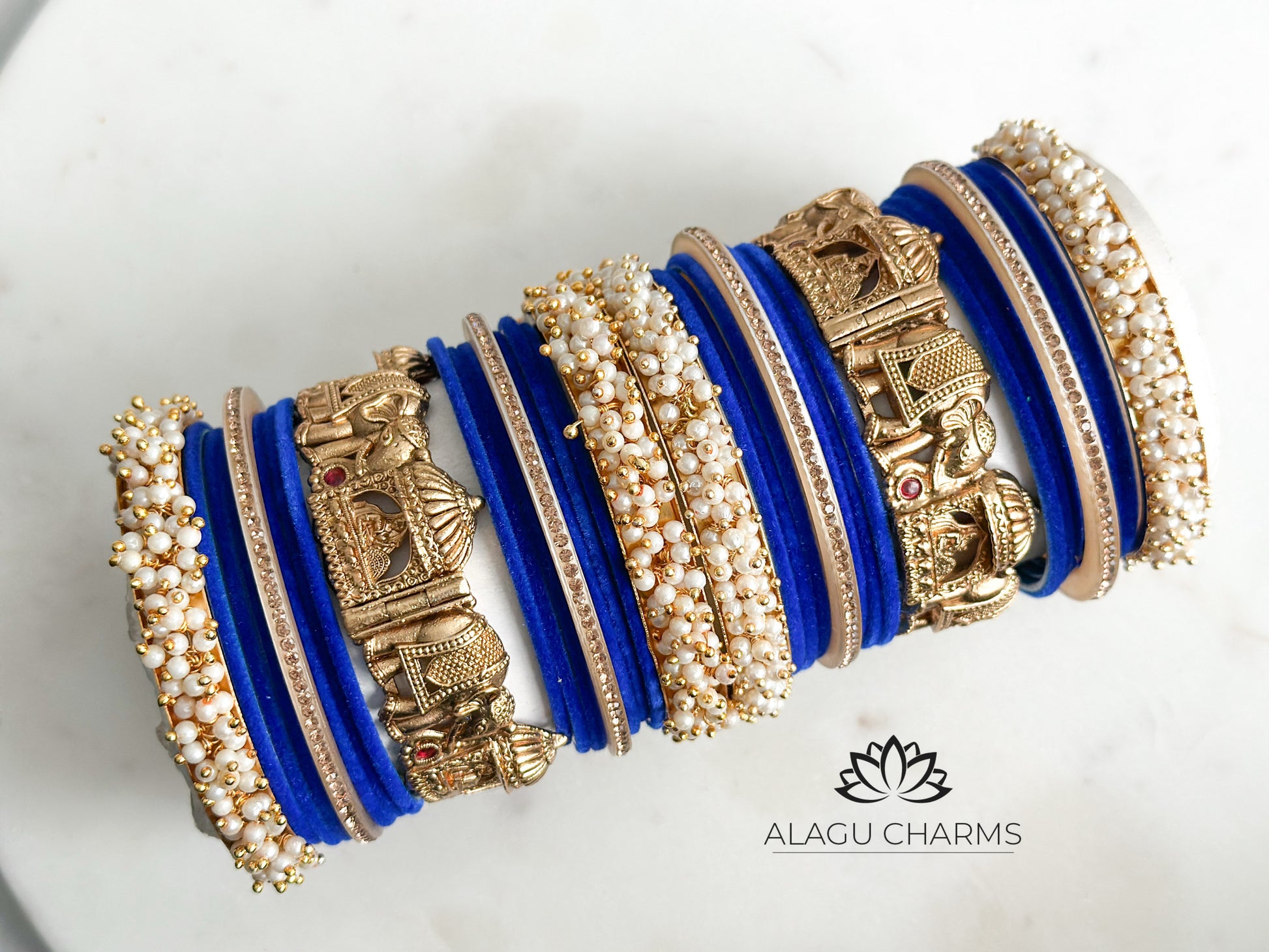 Mangalya- Traditional Wedding Bangles Set for both Arms (royal blue)