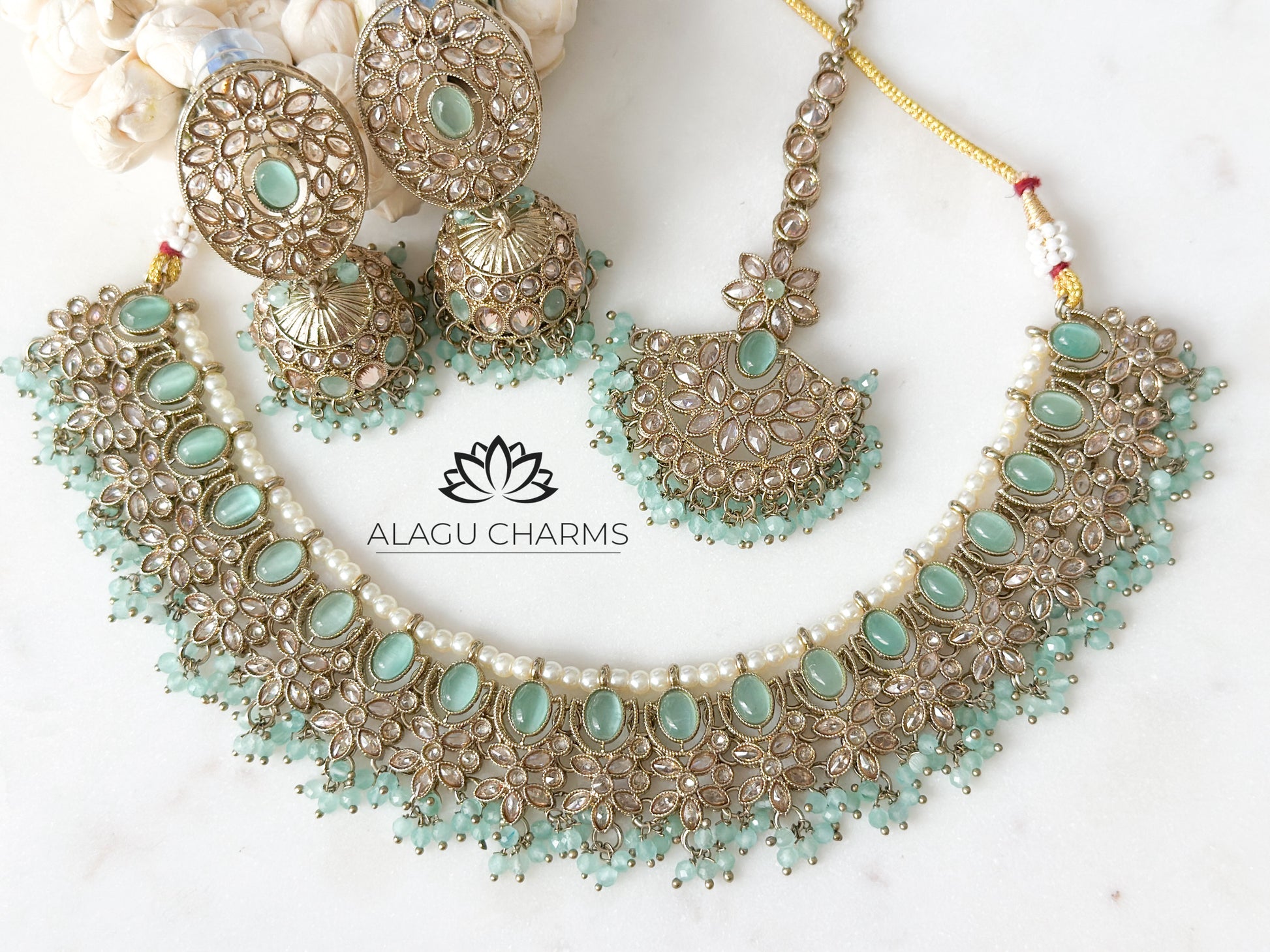 Megna- Polki necklace set with mint details