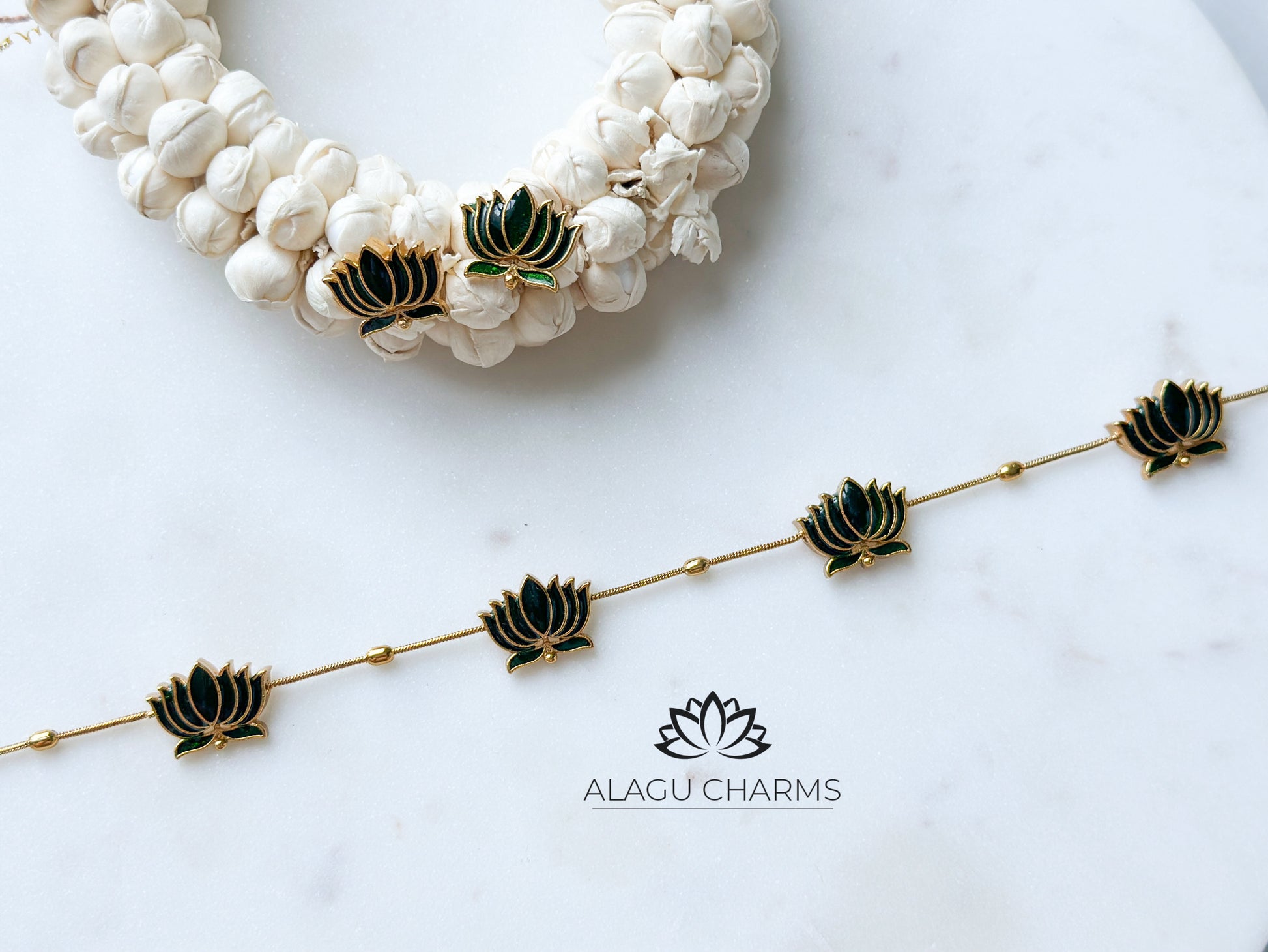 Lotus detailed neck piece with stud in ruby. Can be worn closer to your neck as a choker or lower on your neckline.