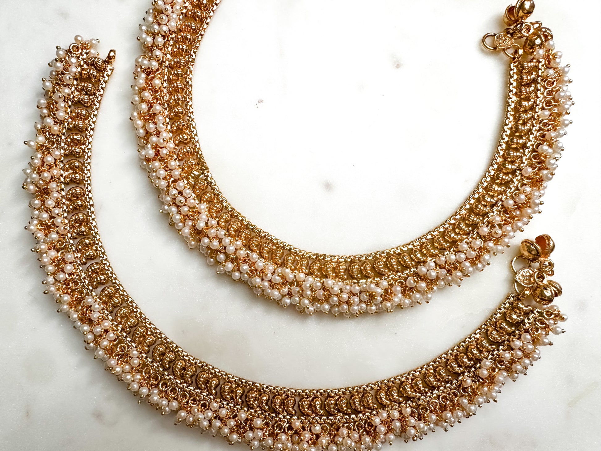 Thajani- Antique gold Bridal Anklets with dangling pearls